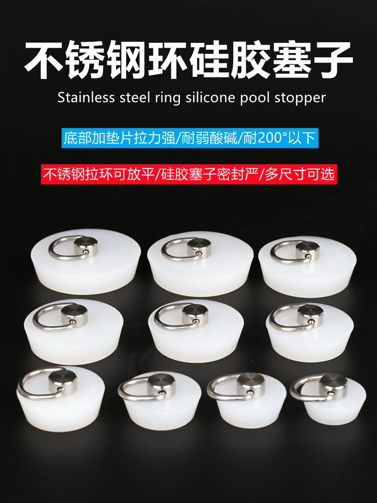 | nameOriginal | MJ43 steel ring silicone bathtub plug mop pool washbasin drainer sewer plug wooden bucket laundry pool water sealing |