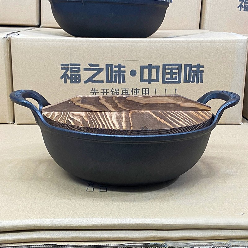 MJ4327/30/32cm cast iron ingot pot double-ear old-fashioned pig iron pot household cooking pot non-coated flat bottom small