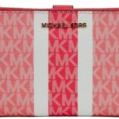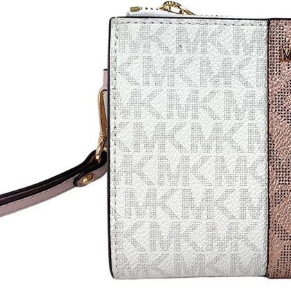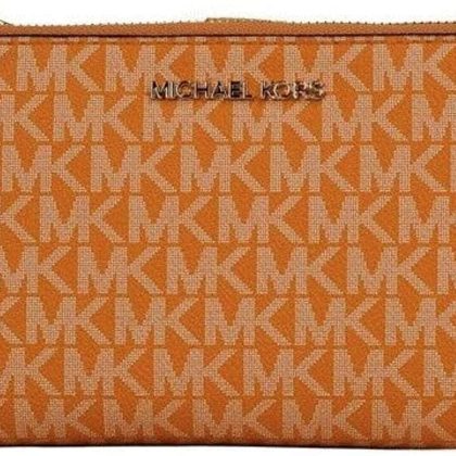 The Michael Kors Jet Set Travel Double Zip Wristlet in Signature PVC (Brown / Acorn) is the perfect accessory for the fashion-forward woman on the go. Crafted from high-quality PVC material, this wristlet is both durable and stylish. The double zip design allows for easy access to your essentials, while the wrist strap ensures that you can keep your hands free. The signature Michael Kors logo adds a touch of luxury to this practical accessory. With its versatile brown and acorn color scheme, this wristlet is sure to complement any outfit. Whether you’re running errands or heading out for a night on the town, the Michael Kors Jet Set Travel Double Zip Wristlet is the perfect choice for keeping your essentials close at hand.