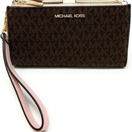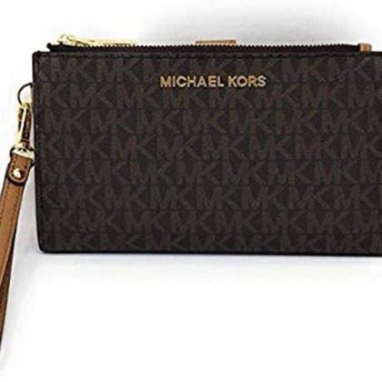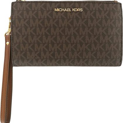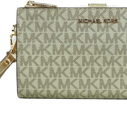 MK Double Zip Wristlet – Signature PVC (Brown / Acorn)