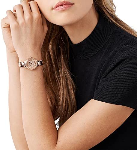 The Michael Kors Women’s Allie Three-Hand, Rose Gold-Tone Stainless Steel Watch, MK4413 is a stunning timepiece that exudes elegance and sophistication. The watch features a rose gold-tone stainless steel case and bracelet, which is both durable and stylish. The three-hand movement ensures accurate timekeeping, while the date display adds practicality to the watch. The rose gold-tone dial is adorned with crystal hour markers, which add a touch of glamour to the watch. The watch is water-resistant up to 50 meters, making it suitable for everyday wear. Whether you’re dressing up for a special occasion or simply running errands, the Michael Kors Women’s Allie Three-Hand, Rose Gold-Tone Stainless Steel Watch, MK4413 is the perfect accessory to elevate any outfit.