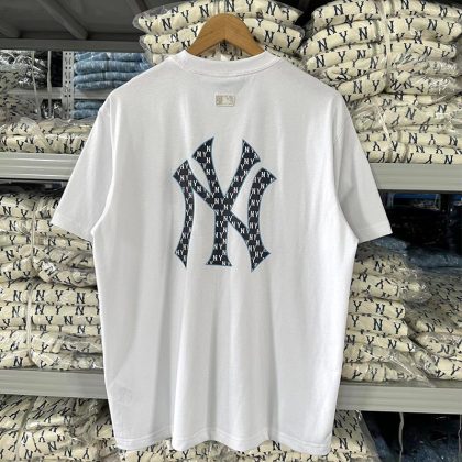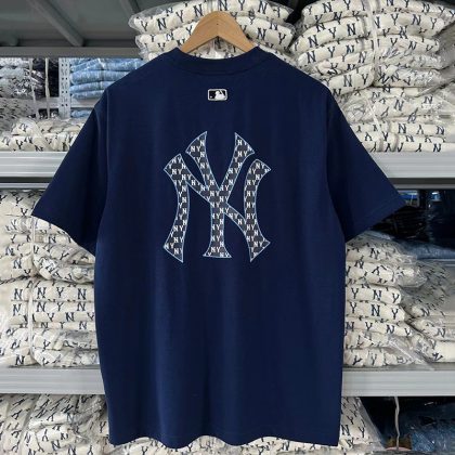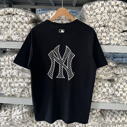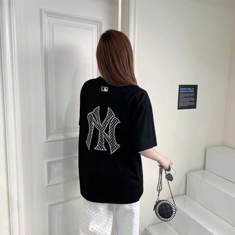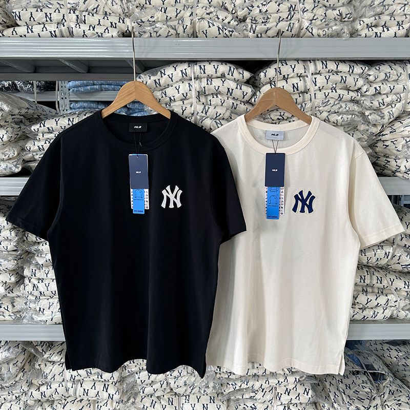 MLB Fashion Brand Old Flower Embroidered Short-sleeved T-shirt Summer NY Large Label Letter Pure Cotton Loose Casual Unisex