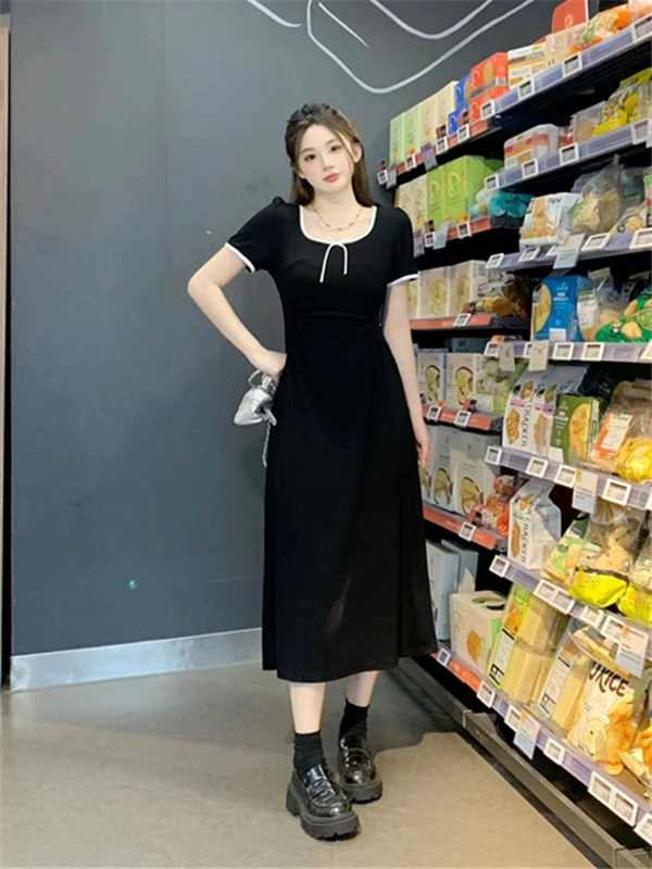 | nameOriginal | MM fat black dress summer Hepburn style short sleeves |