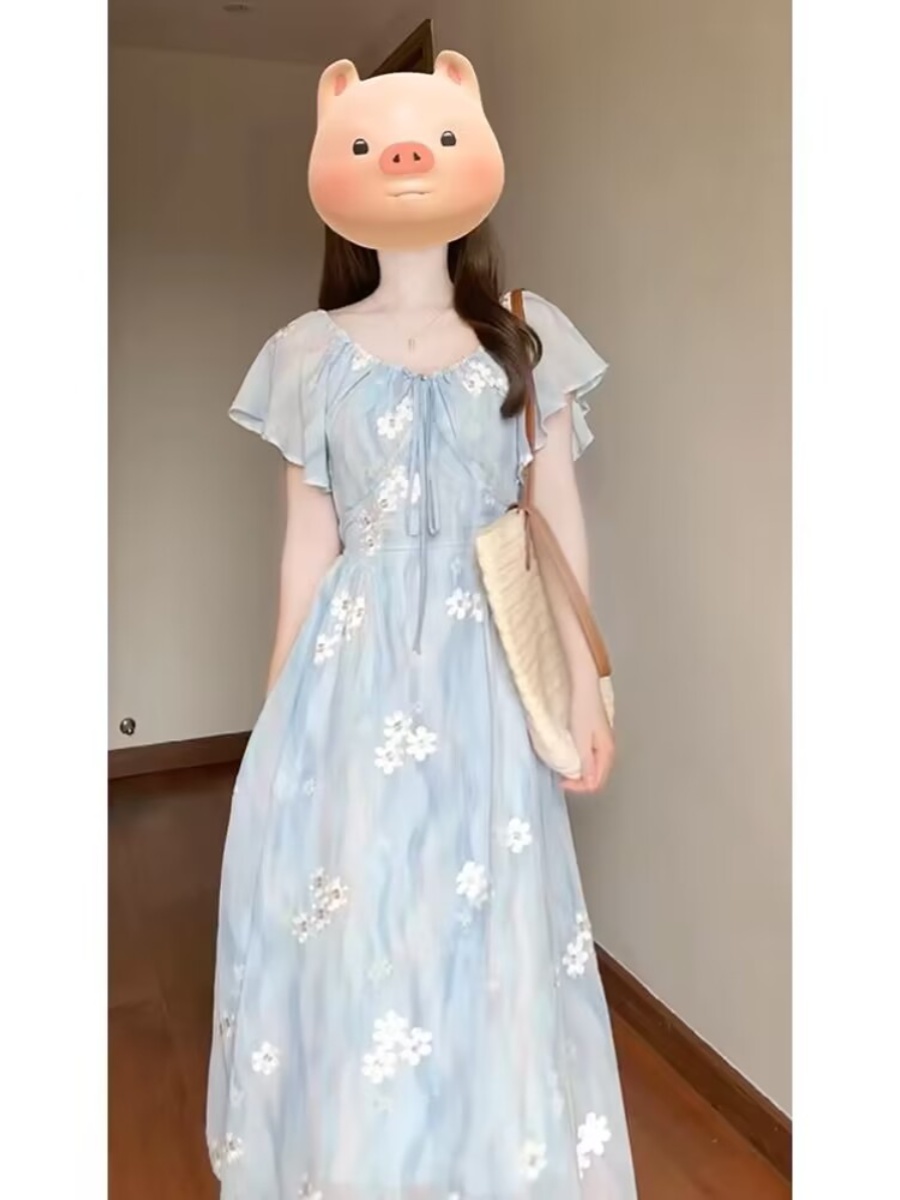 | nameOriginal | MM French petal sleeve summer fat pleated dress |
