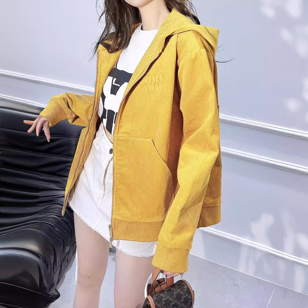 Mm Home 24ss New Corduroy Hooded Jacket Nostalgic Fashionable Tape Embroidered Letter Logo Hooded Jacket