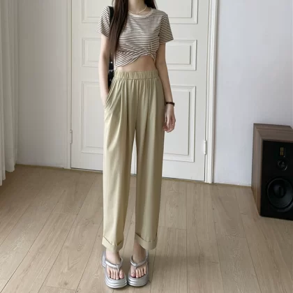 | nameOriginal | MM large size khaki loose slightly fat ice silk casual pants |