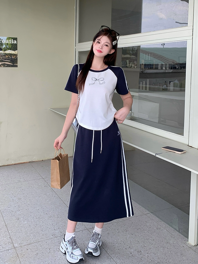MM Large Size T-shirt Slightly Fat Contrast Color Hip Cover Fashion Suit