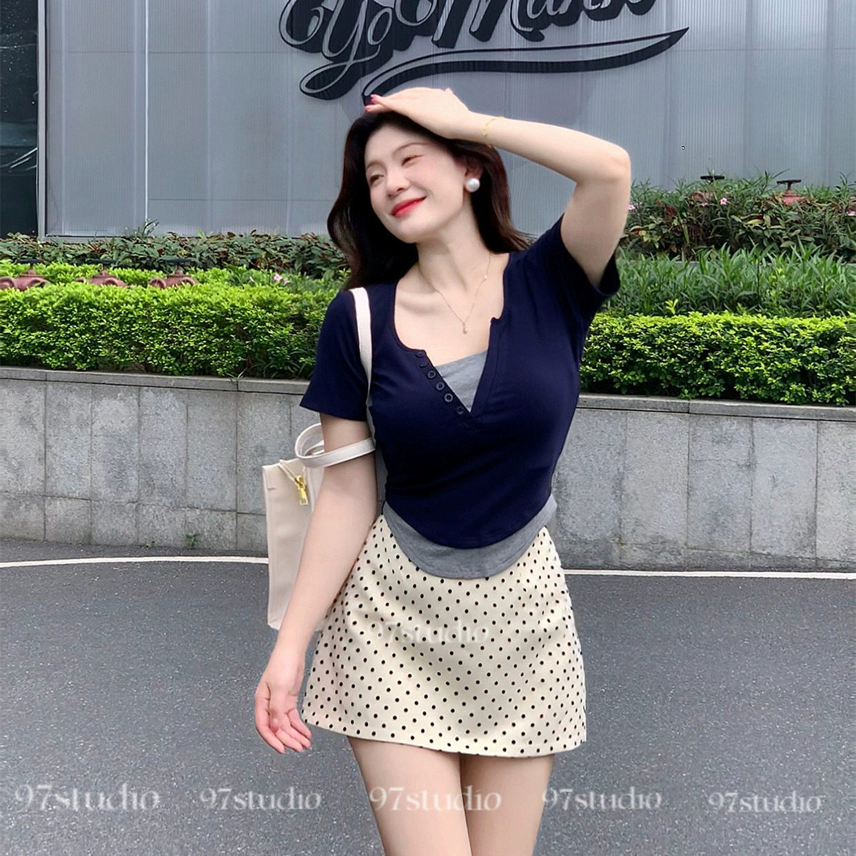 | nameOriginal | MM new summer style contrasting shoulder top short-sleeved T-shirt |