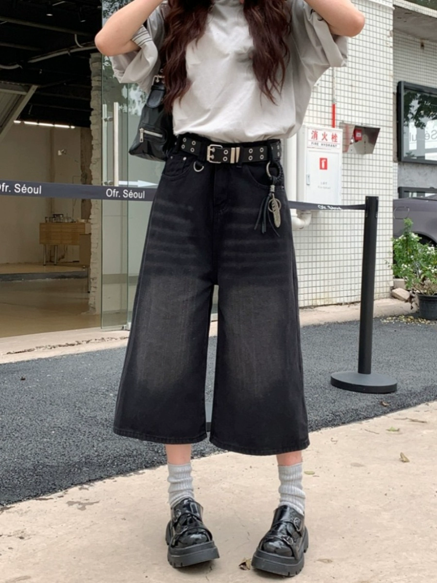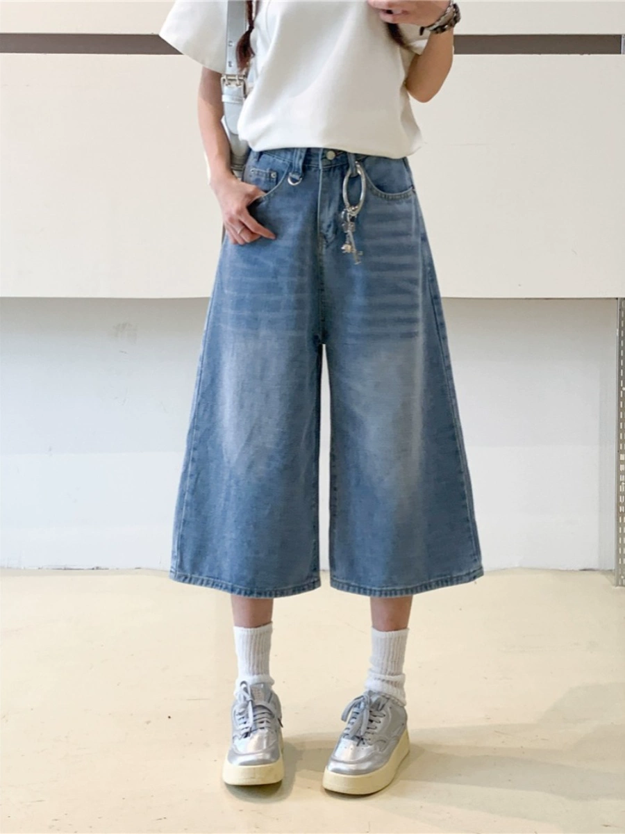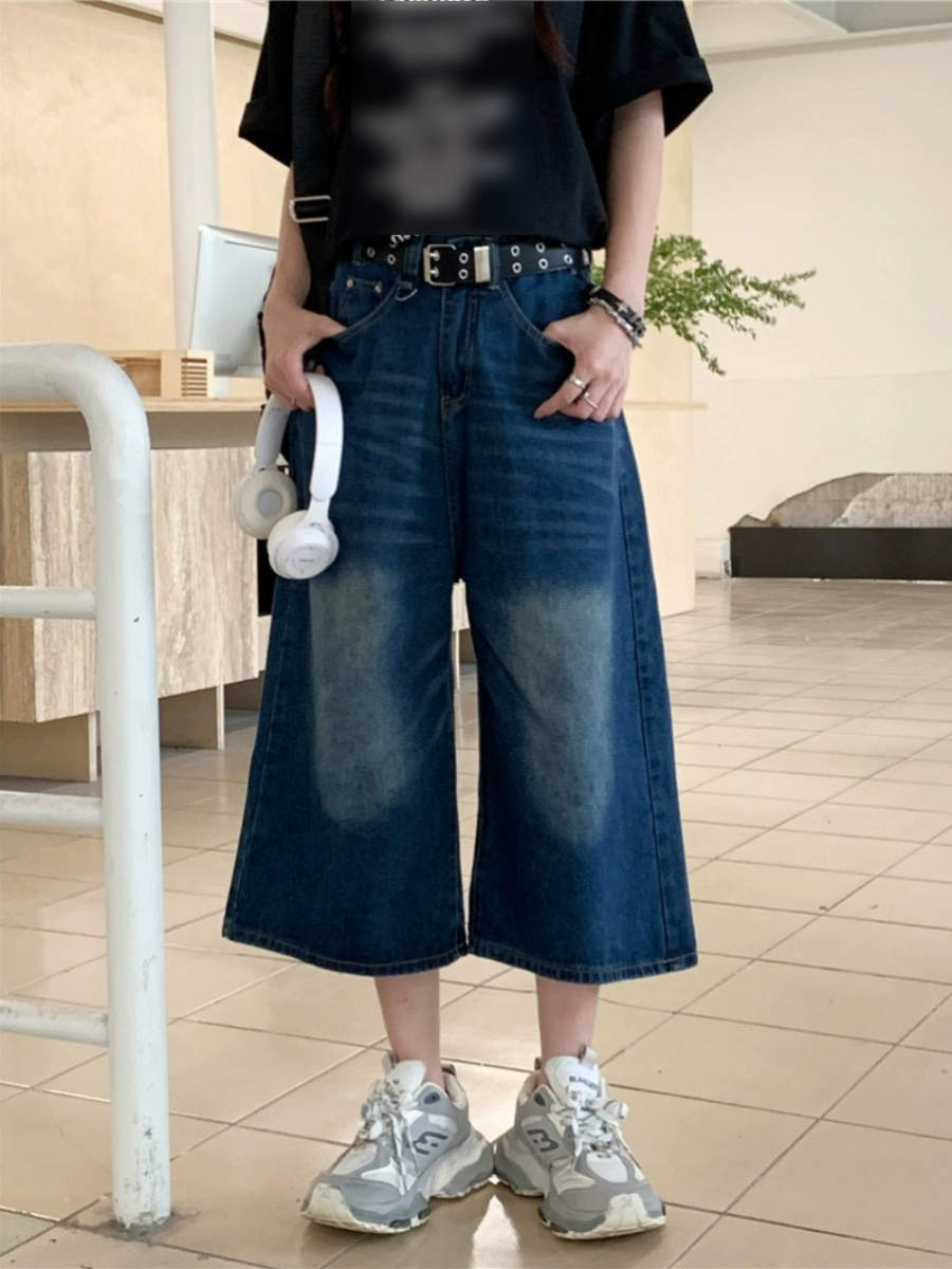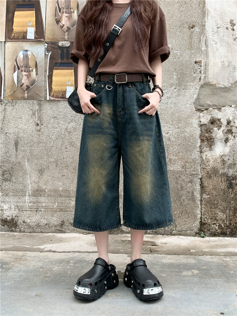 MM plus size Hong Kong style retro washed distressed jeans