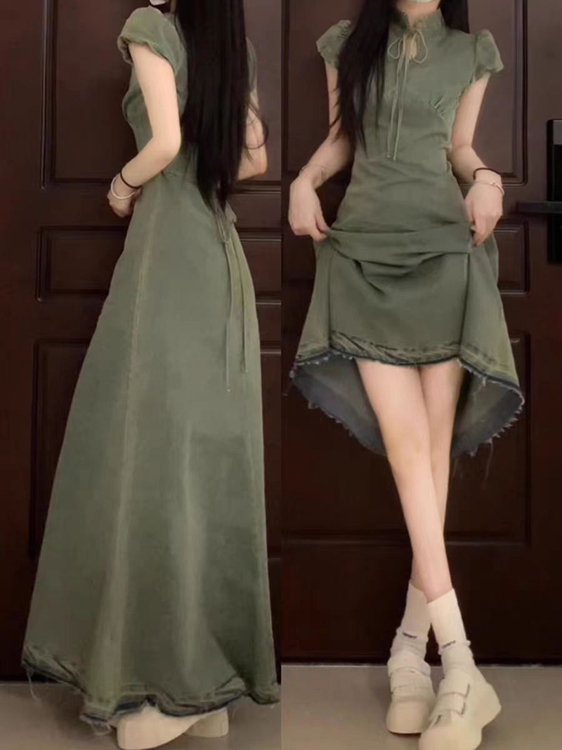 MM retro women’s summer hip-hugging cheongsam denim dress