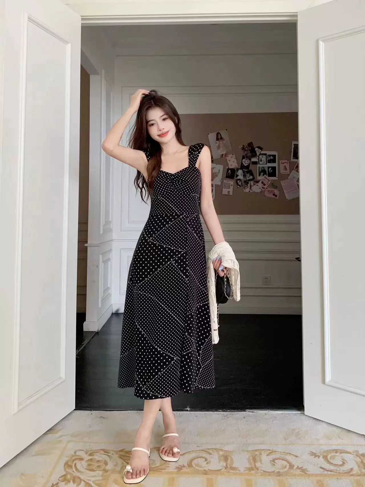 | nameOriginal | MM summer belly-covering slightly fat polka-dot suspender dress |