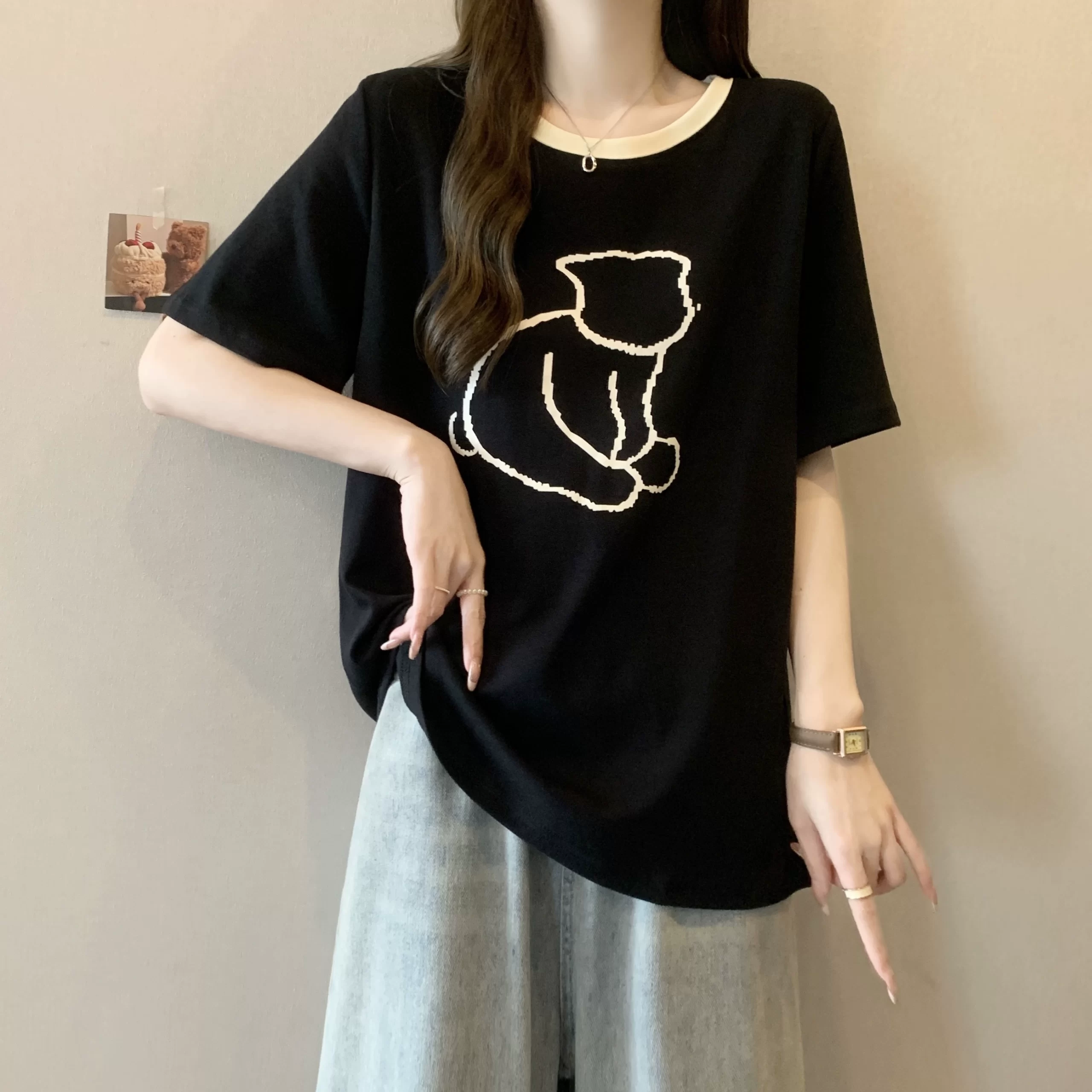 | nameOriginal | MM Summer Contrast Color Round Neck Casual Right Shoulder Short Sleeve T-Shirt |