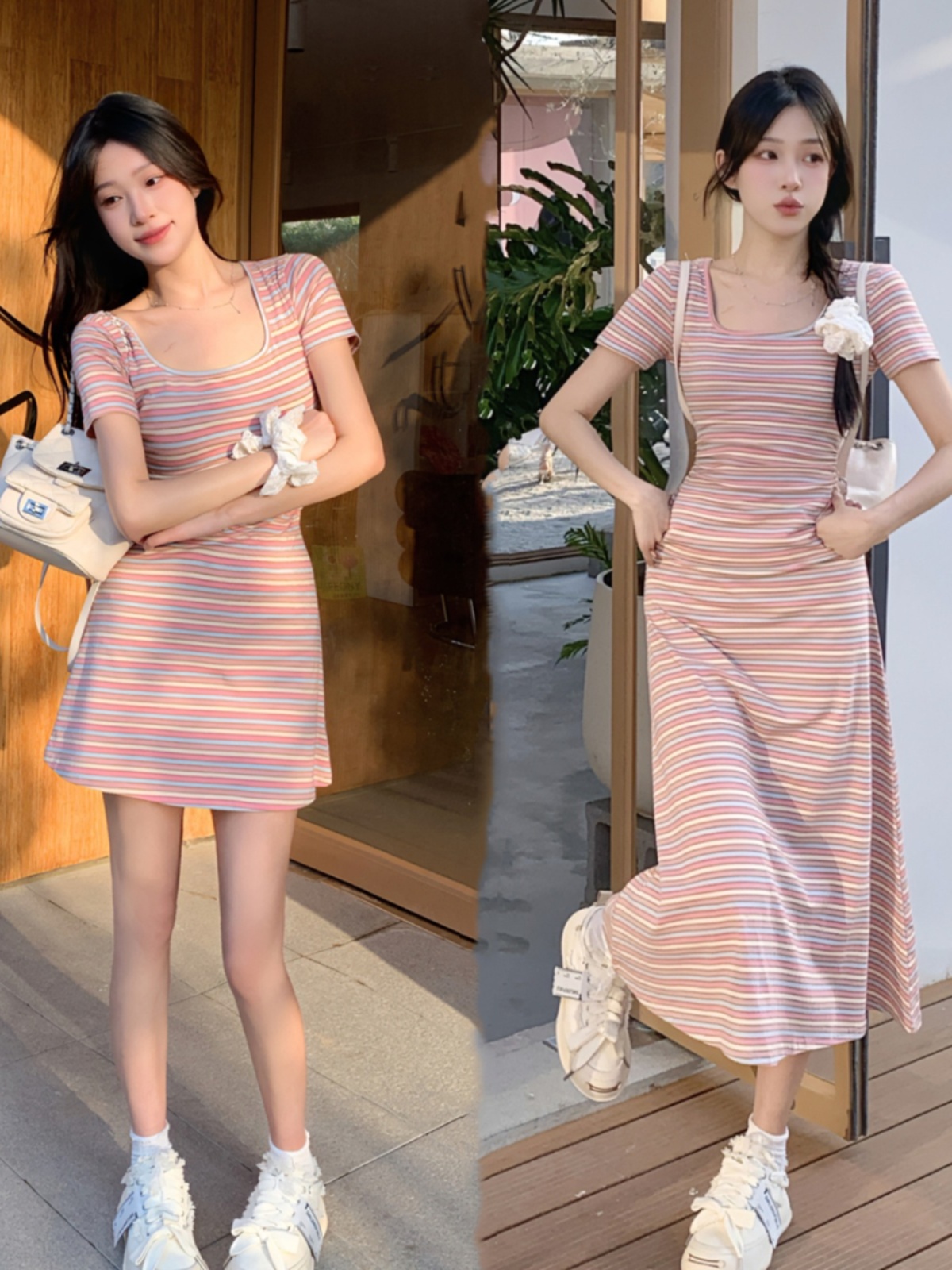 | nameOriginal | MM summer hip-hugging slightly fat striped short-sleeved dress |