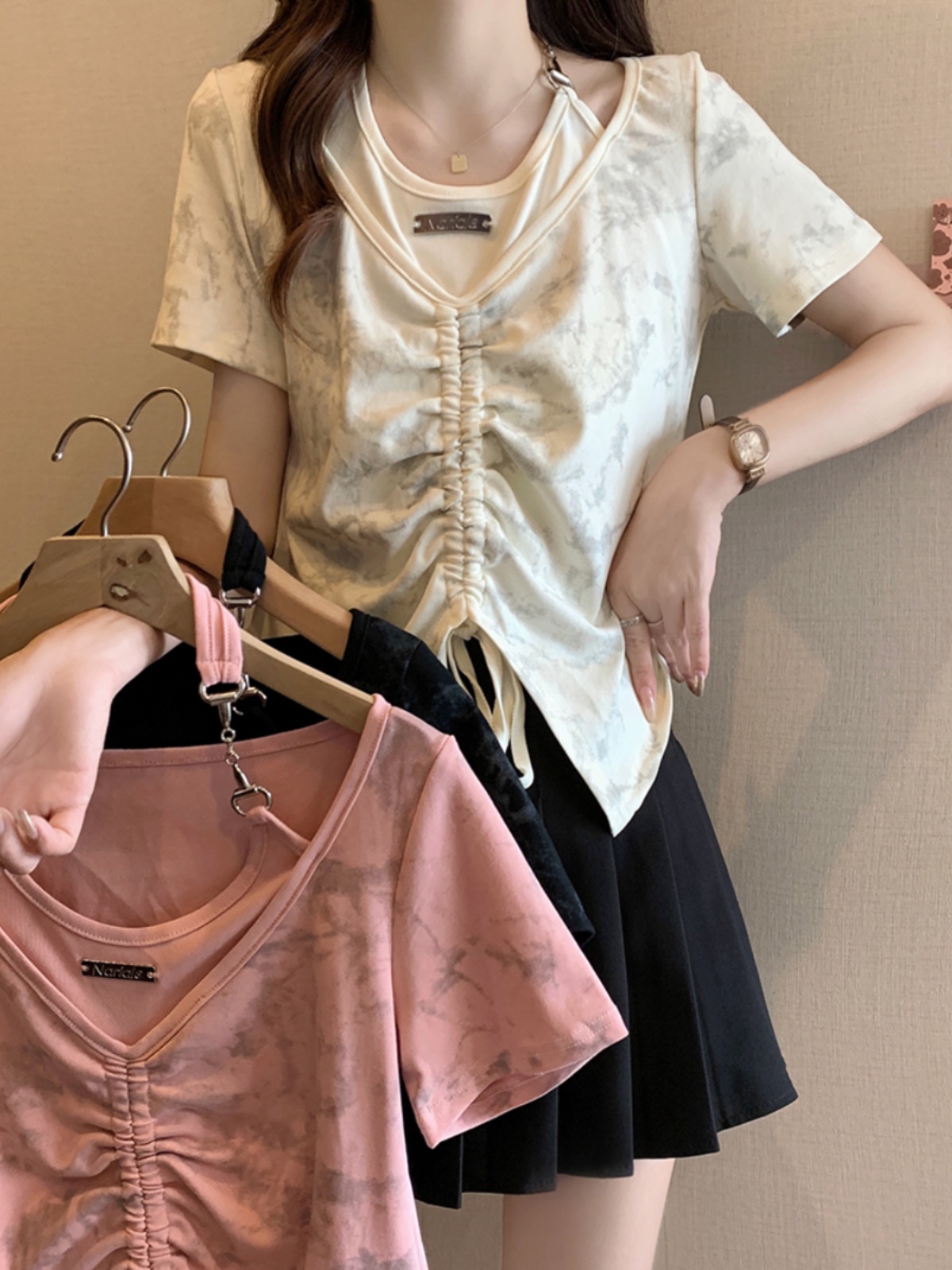 | nameOriginal | MM summer top slightly fat tie-dye drawstring short-sleeved T-shirt |