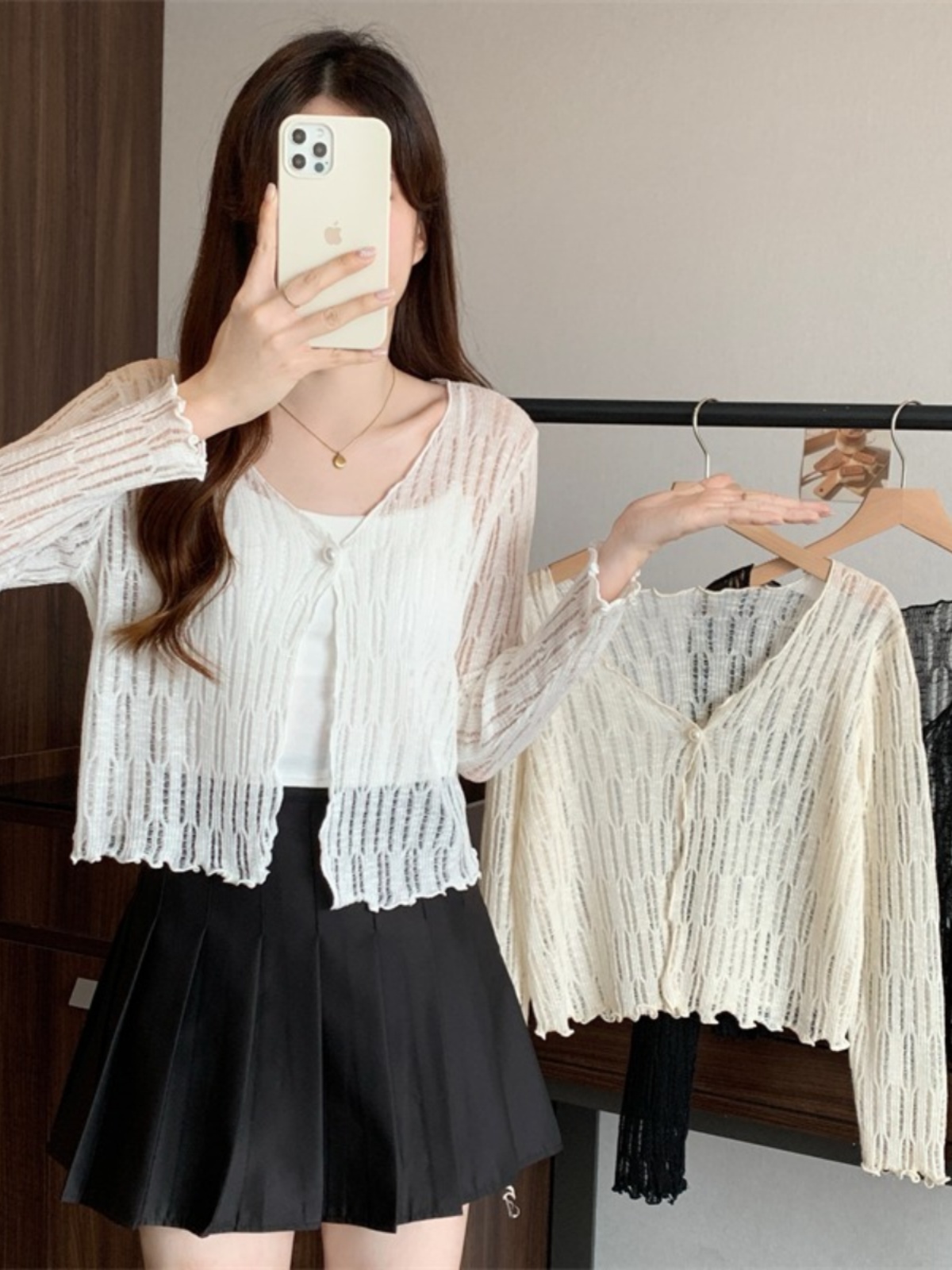 mm white ice silk slightly fat and slimming knitted cardigan that covers the flesh