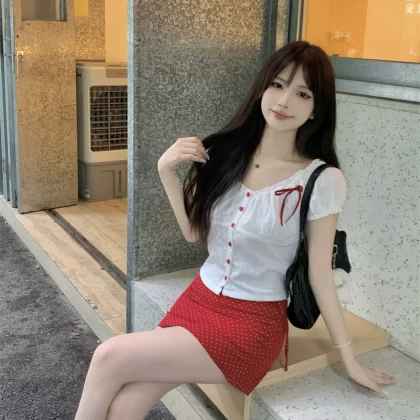 MM women’s summer straps red polka dot fashion suit