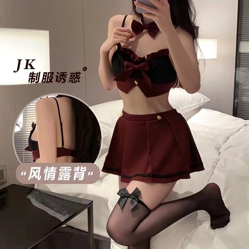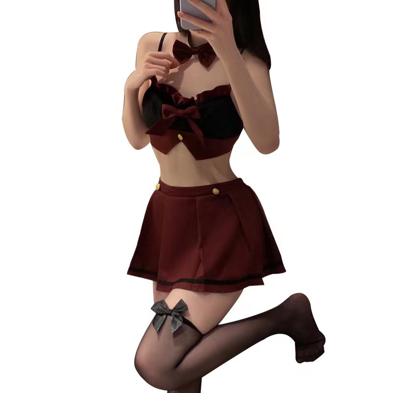| nameOriginal | Mo He sexy lingerie solid color student wear ultra short pleated skirt waist-exposed temptation maid uniform coquettish suit |