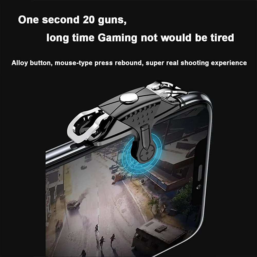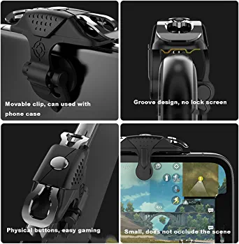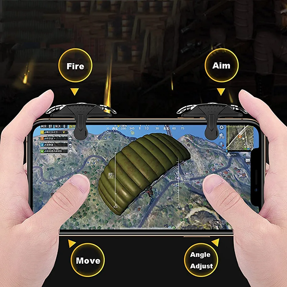 Mobile gaming controller with triggers, joystick, and sensitive shoot aim buttons for PUBG, COD, and other shooting games.