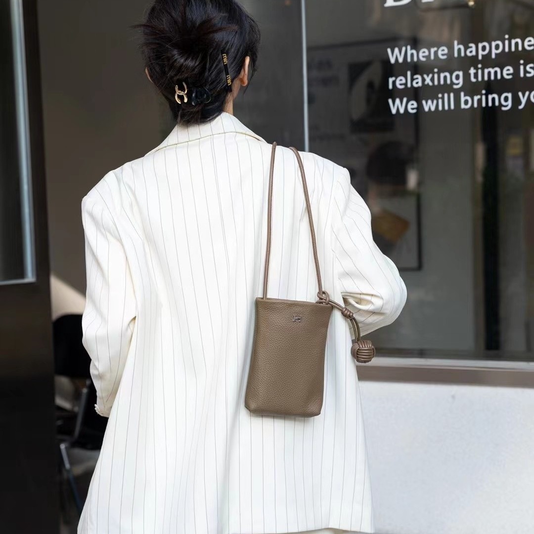 Mobile phone bag for women 2024 new small bag first layer cowhide vertical messenger bag small bag for mobile phone casual bag