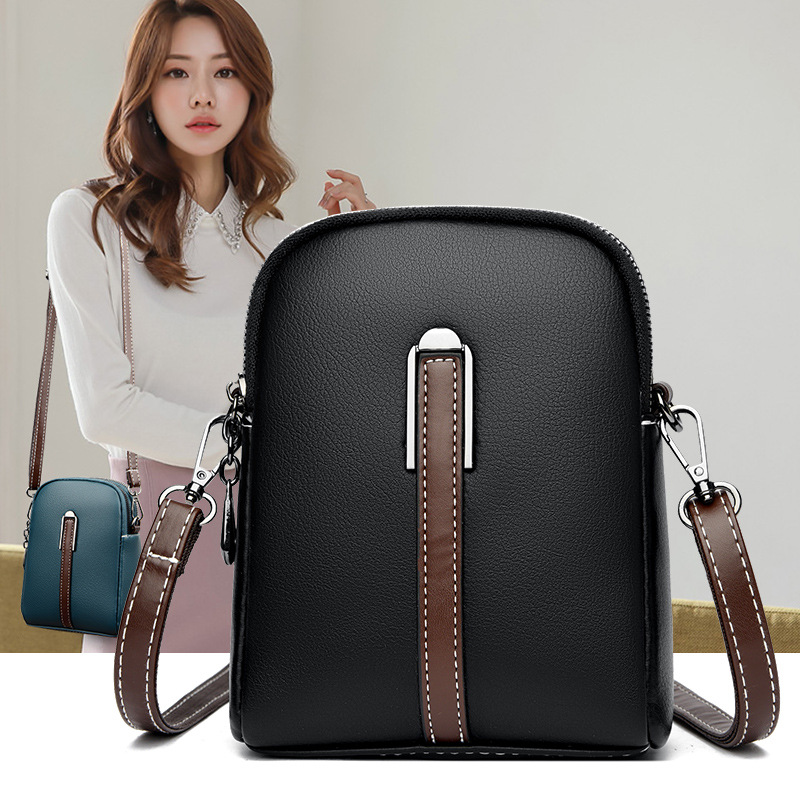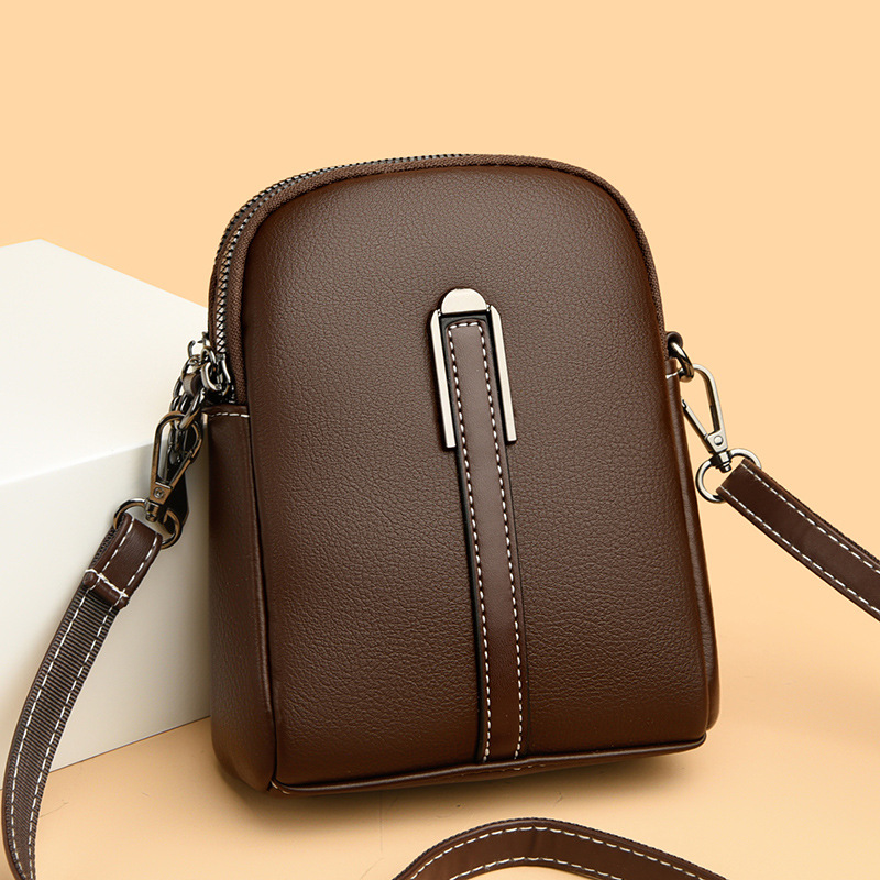 Mobile Phone Bag Women's 2024 New Fashion Soft Leather Double Layer Crossbody Bag Middle-aged Outdoor Small Square Bag Shoulder Bag