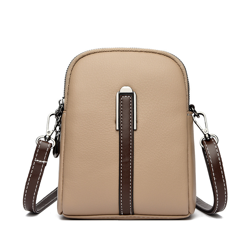 Mobile Phone Bag Women’s 2024 New Fashion Soft Leather Double Layer Crossbody Bag Middle-aged Outdoor Small Square Bag Shoulder Bag