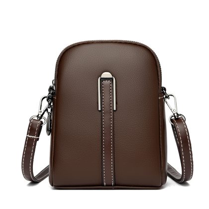 Mobile Phone Bag Women's 2024 New Fashion Soft Leather Double Layer Crossbody Bag Middle-aged Outdoor Small Square Bag Shoulder Bag