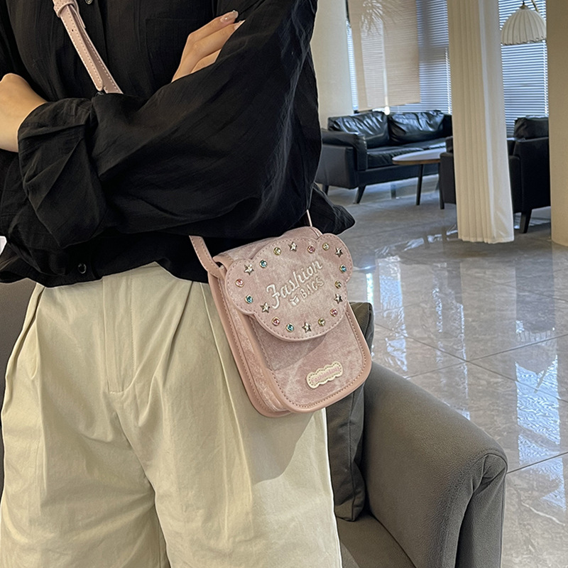 | nameOriginal | Mobile Phone Bag Women's Autumn and Winter New South Korea Colored Diamond Denim Crossbody Bag Niche Embroidered Letters Shoulder Bag Red Bag |