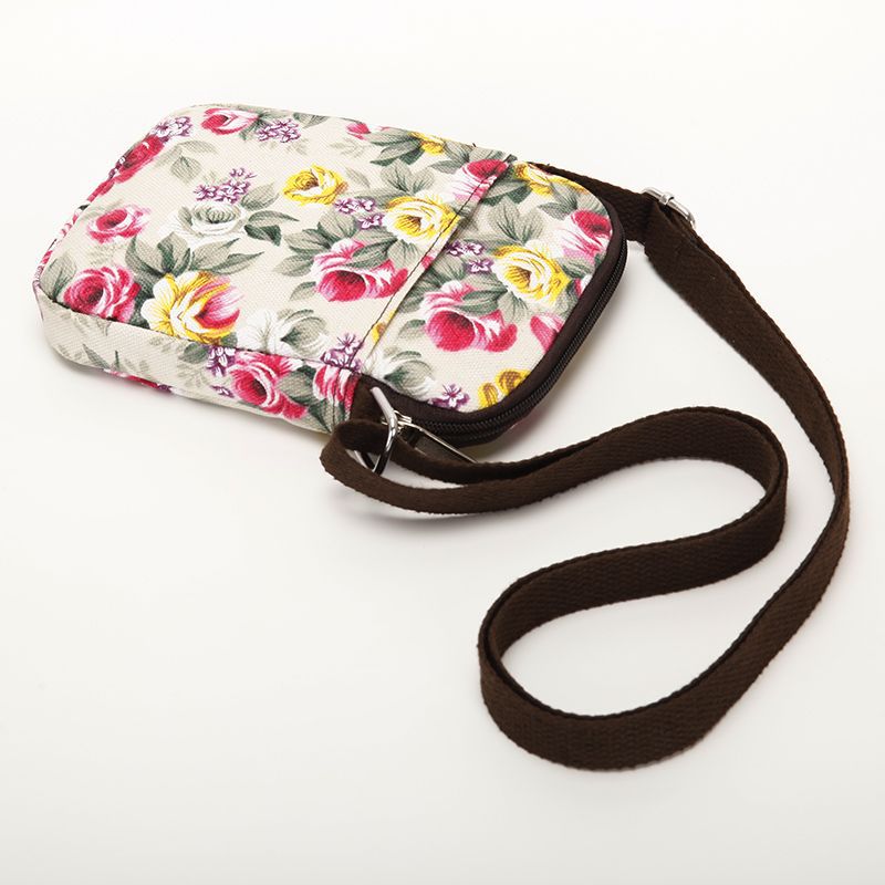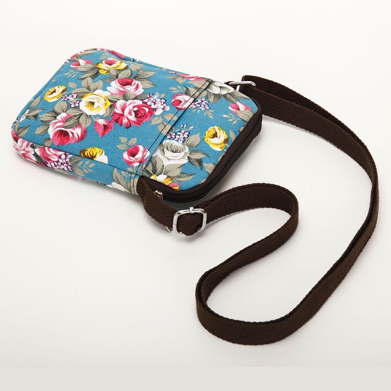 Mobile phone bag women's canvas bag fashion floral messenger bag coin purse simple shopping walking sports mini bag