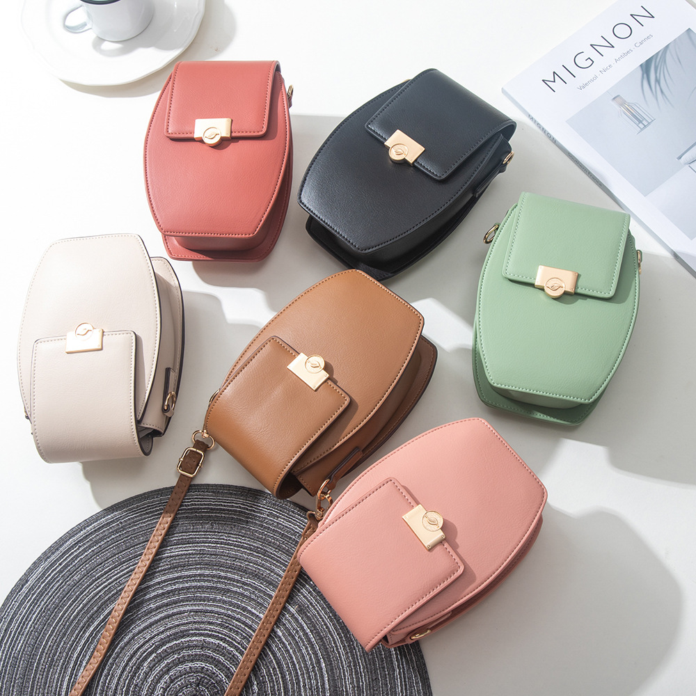 Mobile phone bag women’s Japanese and Korean-style fresh vertical hardware buckle vertical simple buckle all-match shoulder bag women’s messenger bag