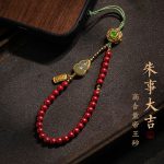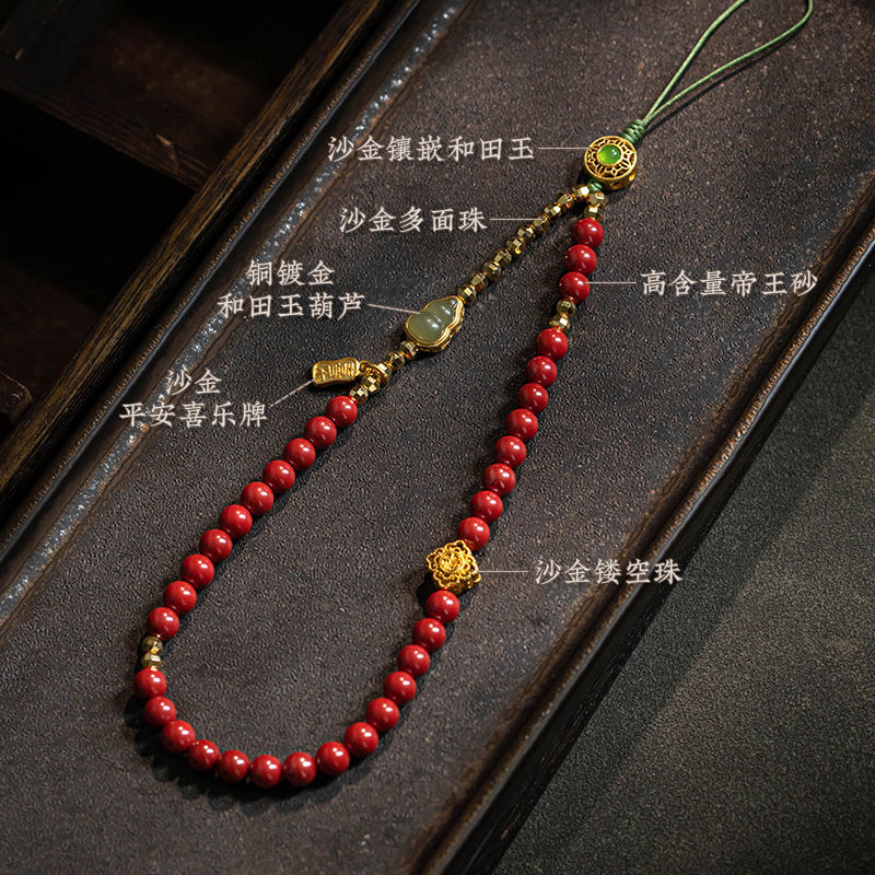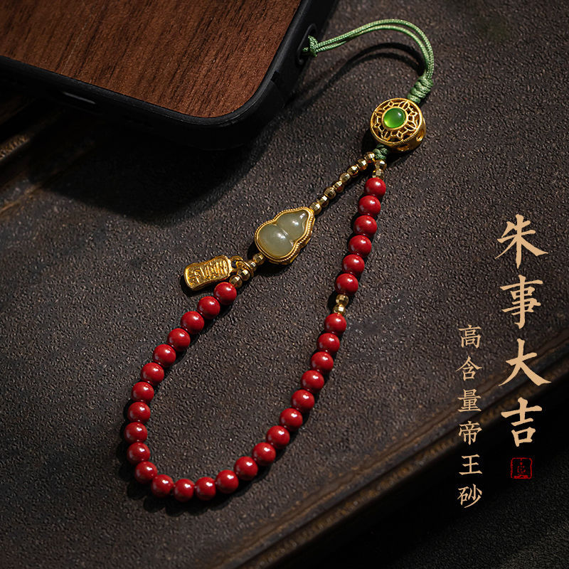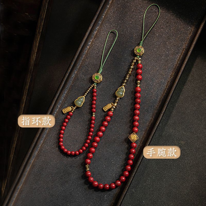 Mobile phone beaded Zhu shi mobile phone chain cinnabar mobile phone pendant pendant female lanyard jade gourd wrist rope cross-border distribution
