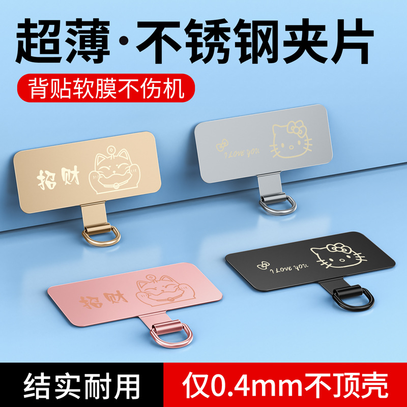 Mobile phone lanyard gasket stainless steel universal shell clip wrist rope back sticker card chain metal fixed connecting piece