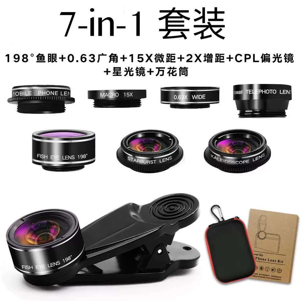 Mobile phone lens 17mm 10-in-1 set wide-angle macro kaleidoscope fun fisheye polarized starlight access door