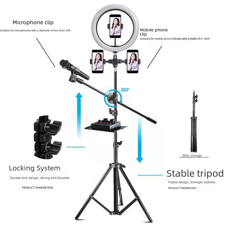 | nameOriginal | Mobile phone live broadcast bracket tripod desktop landing net red trembles fast hand anchor fill light photography full set |