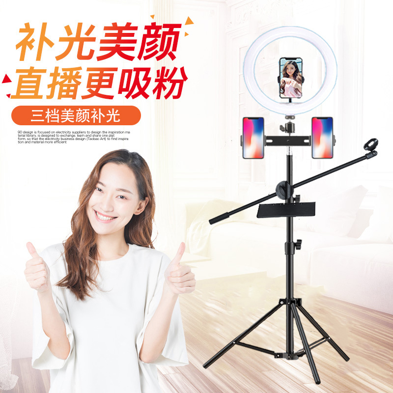 | nameOriginal | Mobile phone live broadcast stand multi-function beauty fill light sound card tray rack microphone rotating crossbar tripod |