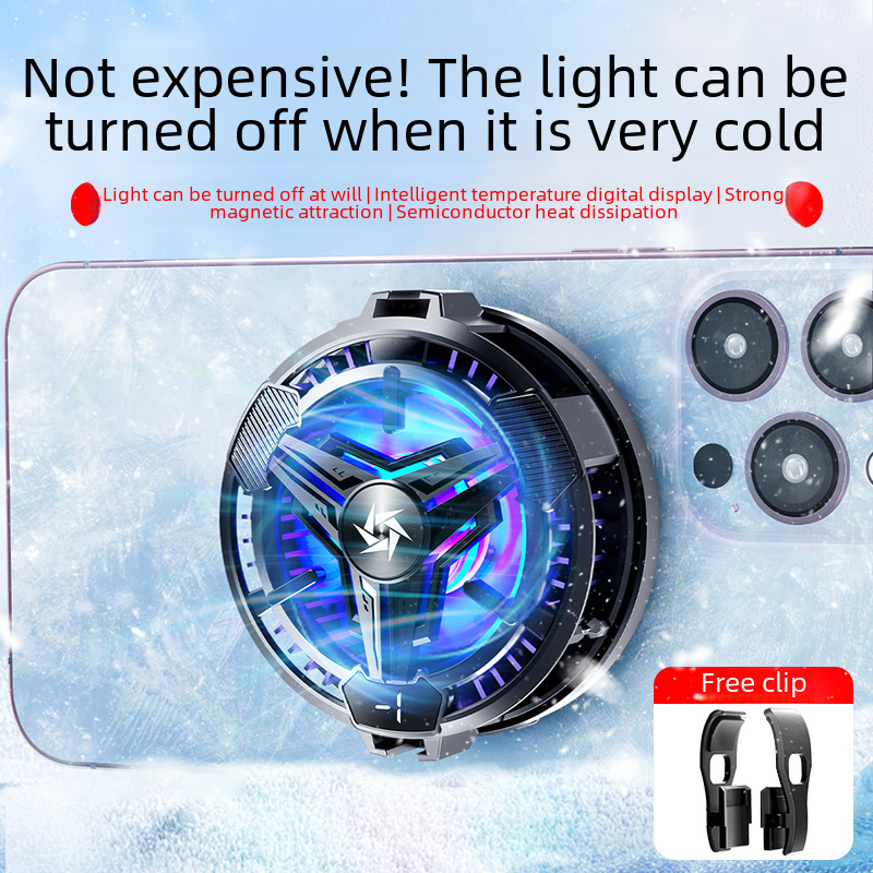Mobile phone semiconductor magnetic radiator RGB mute can turn off lights intelligent temperature can display chicken cooling artifact