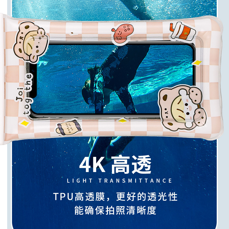 Mobile phone waterproof bag for soaking in hot springs with touch screen airbag swimming mobile phone case drifting artifact neck protective bag