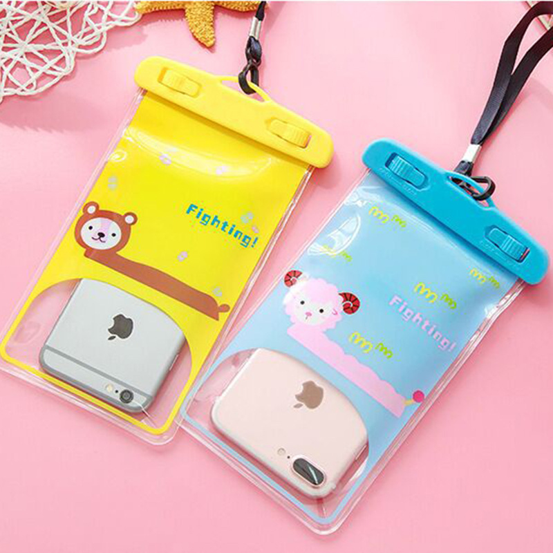 Mobile Phone Waterproof Bag Touchscreen Floating Swimming Drifting Photo Diving Neck Cartoon Transparent Travel Phone Case