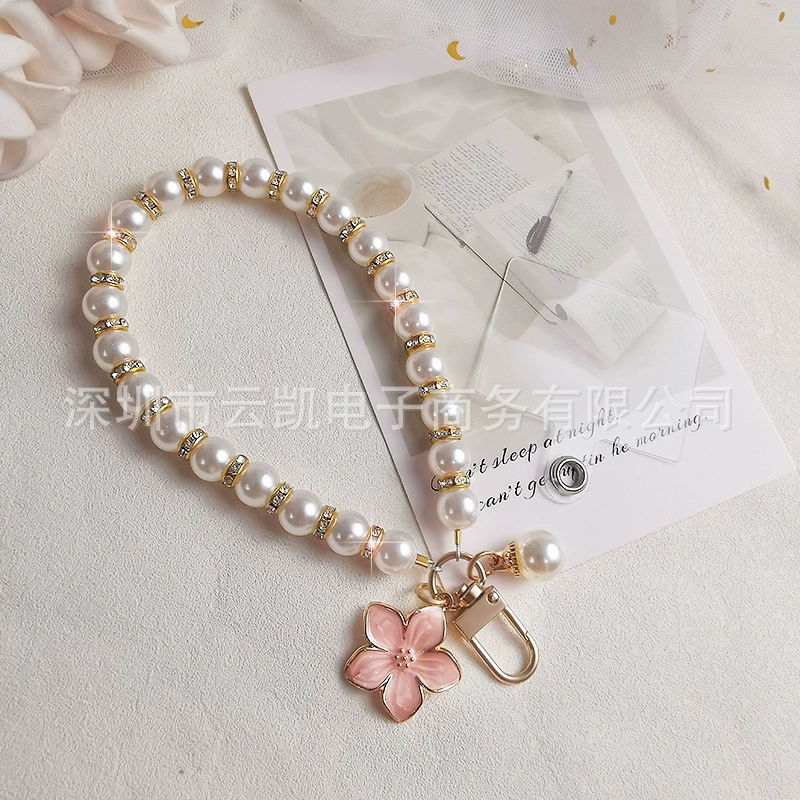 | nameOriginal | Mobile style hand-held small fragrance style pearl round bead lanyard rhinestone pendant women's ins bracelet flower hand-beading |