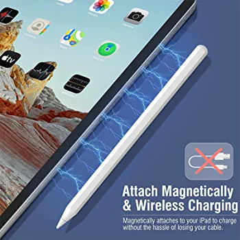 The stylus pen is perfect for iPad (2018-2022) and has features like smart screenshot, quick memo, freehand writing, and graffiti. It has a switch method of attaching to the iPad and comes with a battery indicator that displays on the iPad. The charge time is 1.5 hours for 10 hours of use and it comes with three extra nibs.