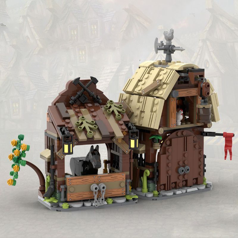 | nameOriginal | MOC-114761 medieval barn and stable compatible with Lego small particle building blocks assembled children's toy model |