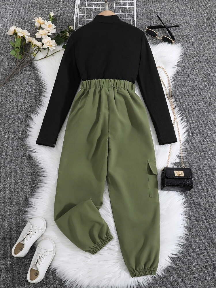 | nameOriginal | Girls Mock Neck Tee & Flap Pocket Cargo Pants |