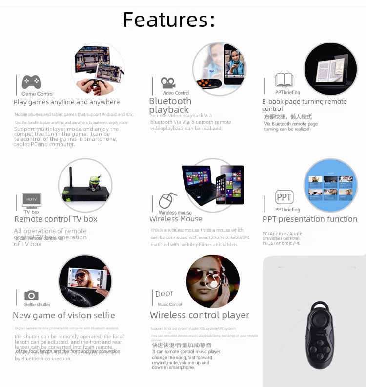 | nameOriginal | MOCUTE032 phablet VR remote control Bluetooth wireless handle selfie mouse e-book page turning control |