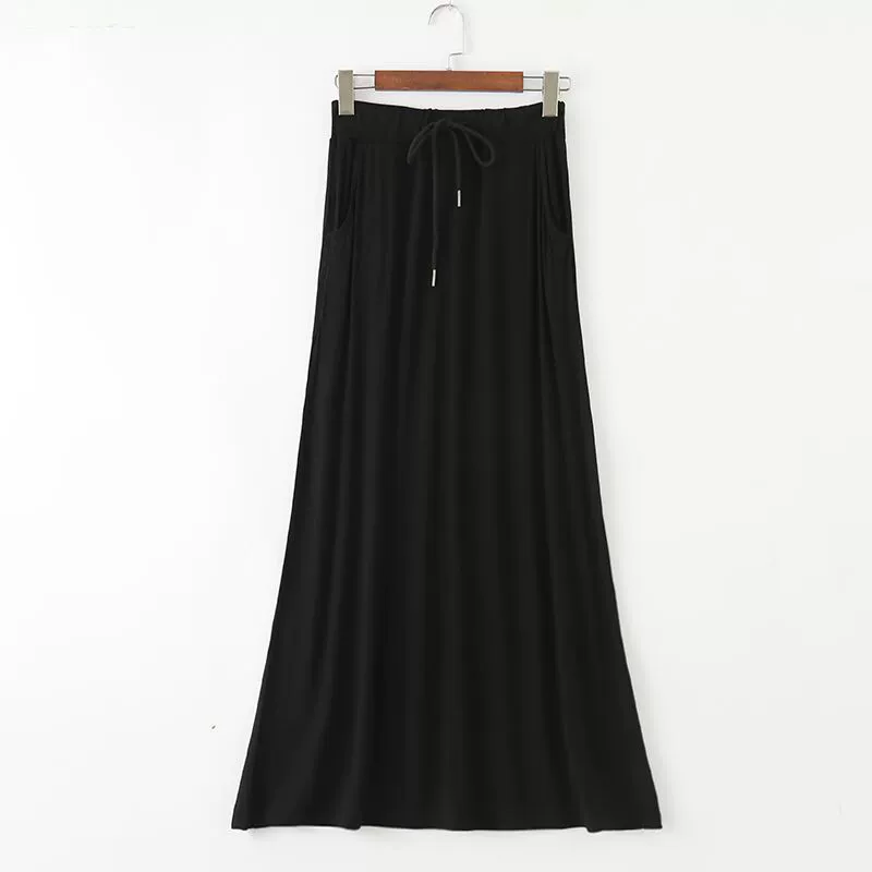 Modal ankle-length black elegant thin skirt