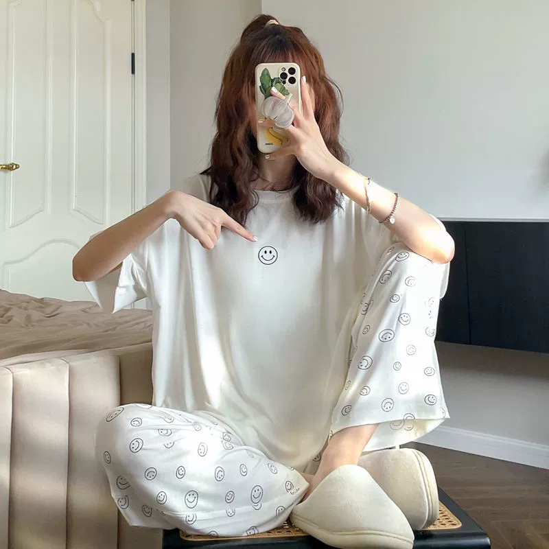 | nameOriginal | Modal cool women's round neck pajamas printed with smiling faces |