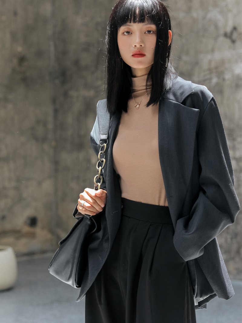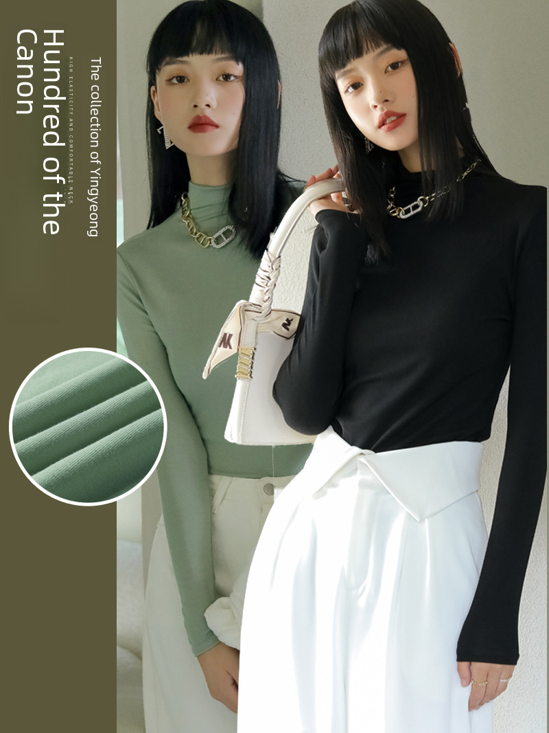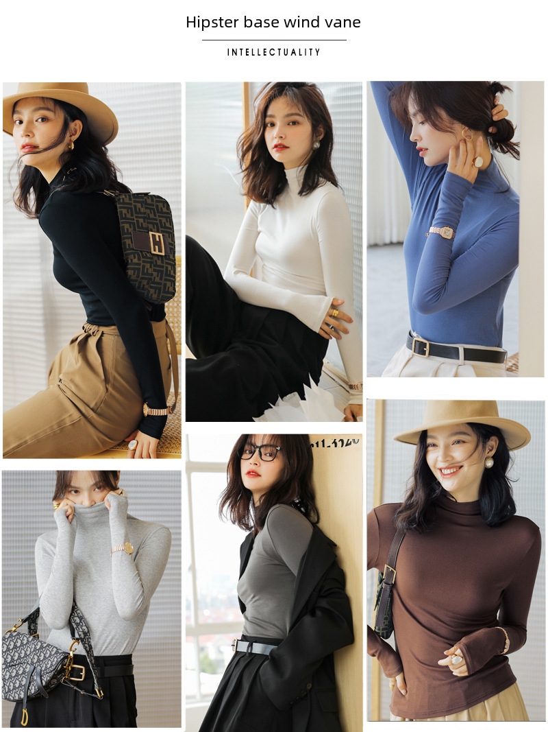 Modal cotton slim-fit half-turtleneck mid-collar long-sleeved bottoming shirt Women’s inner wear spring, autumn and winter tight solid color top T-shirt