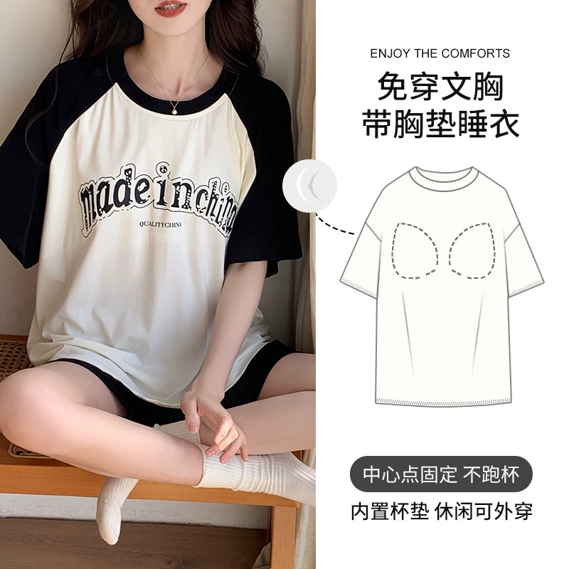 | nameOriginal | Modal cute cartoon home wear pajamas with breast pads |