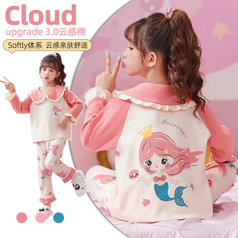 | nameOriginal | Modal girls' pajamas, children's long-sleeved thin summer summer middle-aged and little girls' spring and autumn air-conditioned home clothes sets |