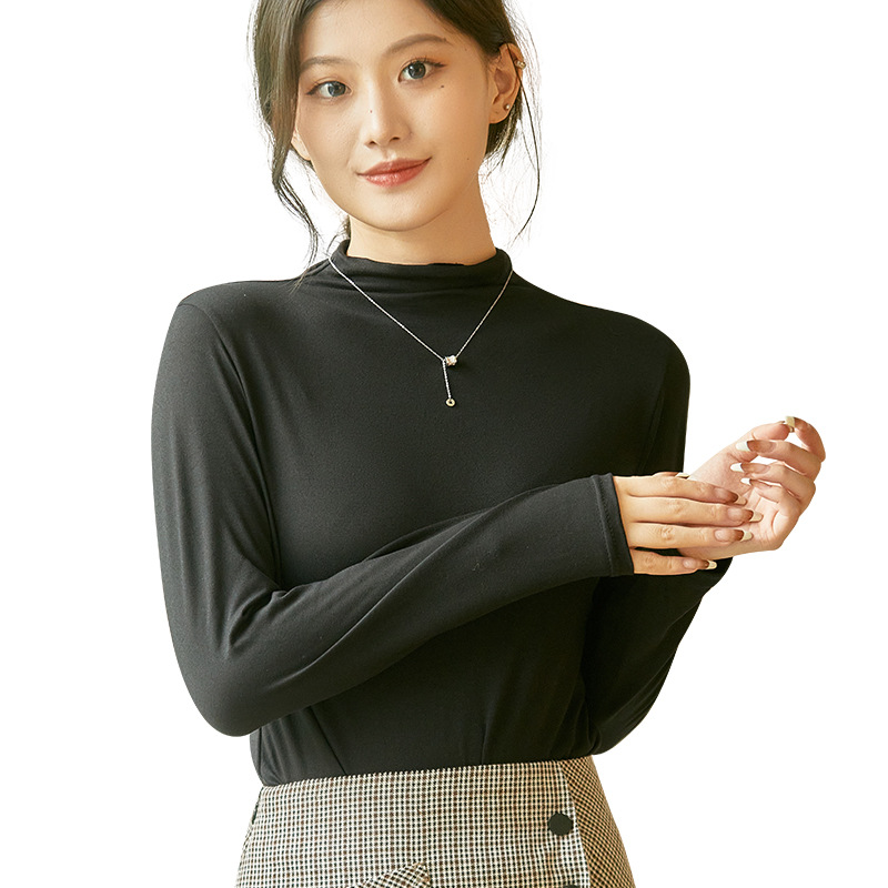 | nameOriginal | Modal Half-high Collar Base Shirt Women's Spring and Autumn 2022 New Black Long-sleeved T-shirt Stylish Top All-match |