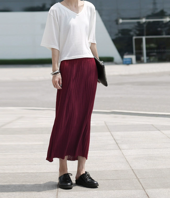 | nameOriginal | Modal Korean style retro A-line pleated skirt with large hem |