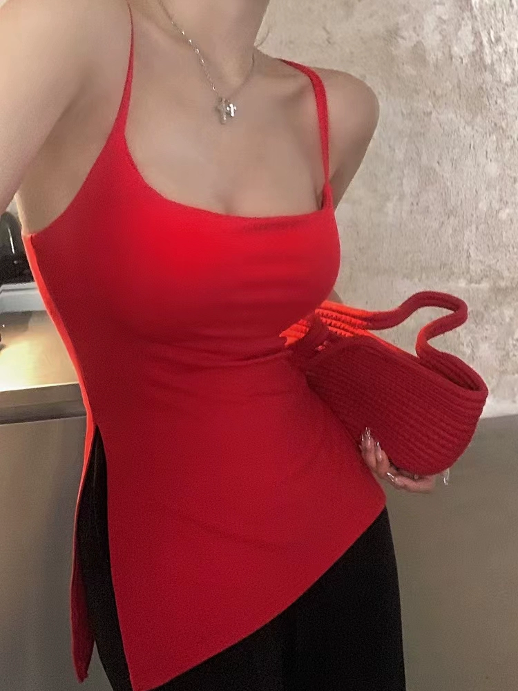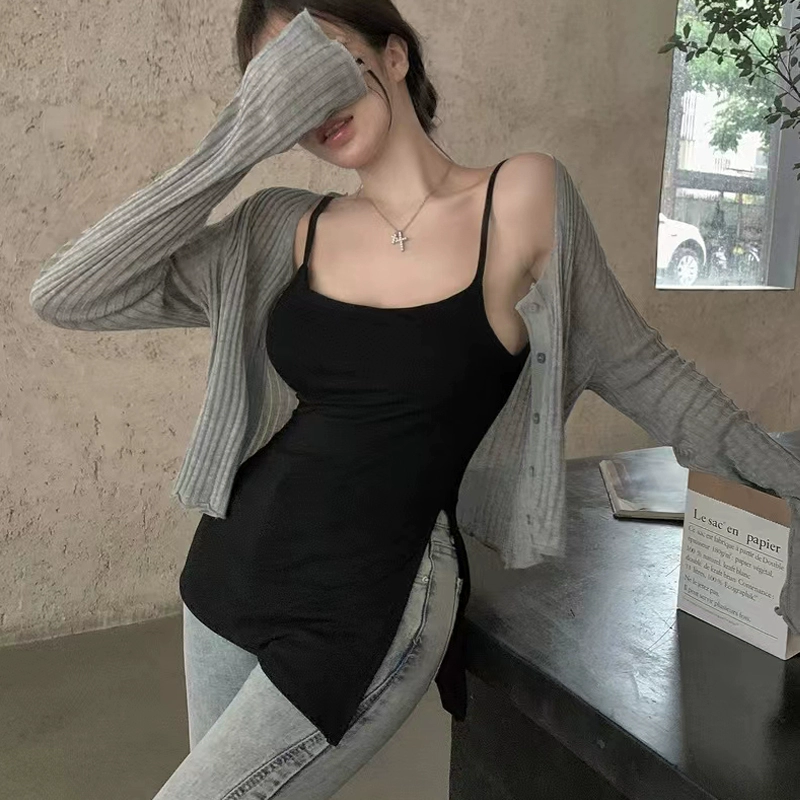 | nameOriginal | Modal large size black slim fit slit camisole |